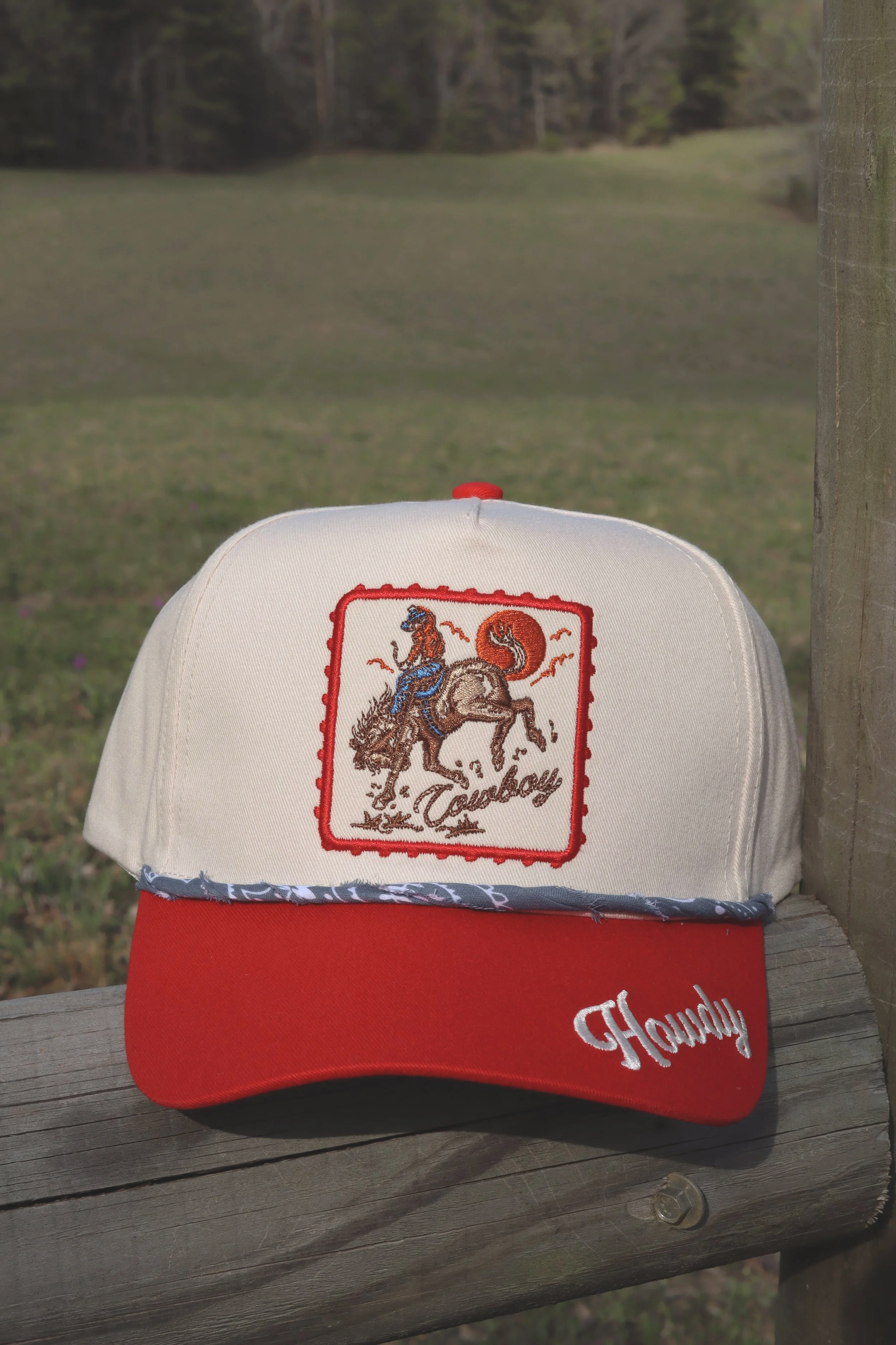 This vintage-inspired Ford dad hat brings a timeless, hardworking aesthetic to your look. Featuring the iconic blue Ford oval logo on a soft cream crown, this hat can be elevated with any bandana. It’s the perfect blend of automotive heritage and western flair, making it an essential accessory for backroads, car shows, or effortless everyday styling.